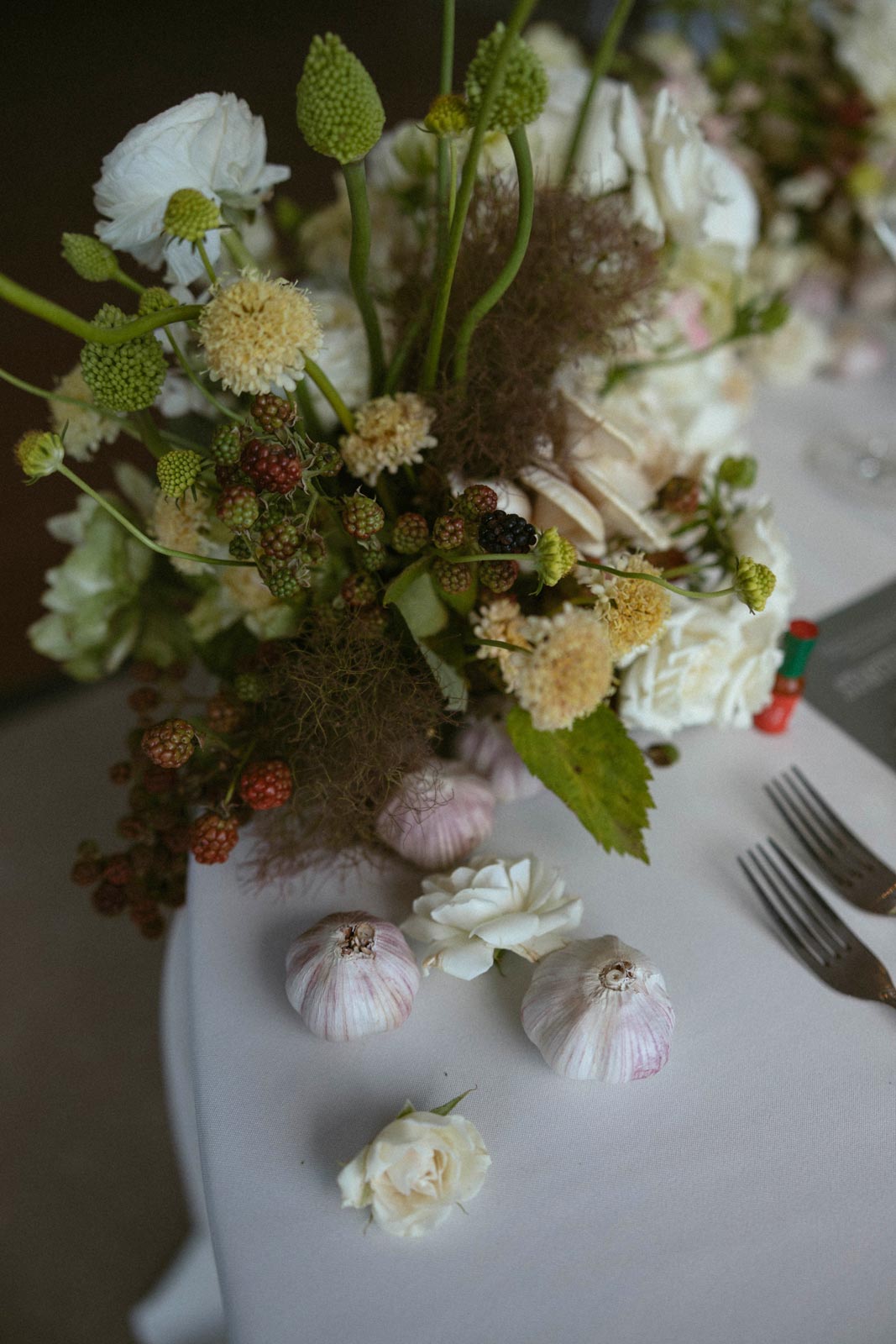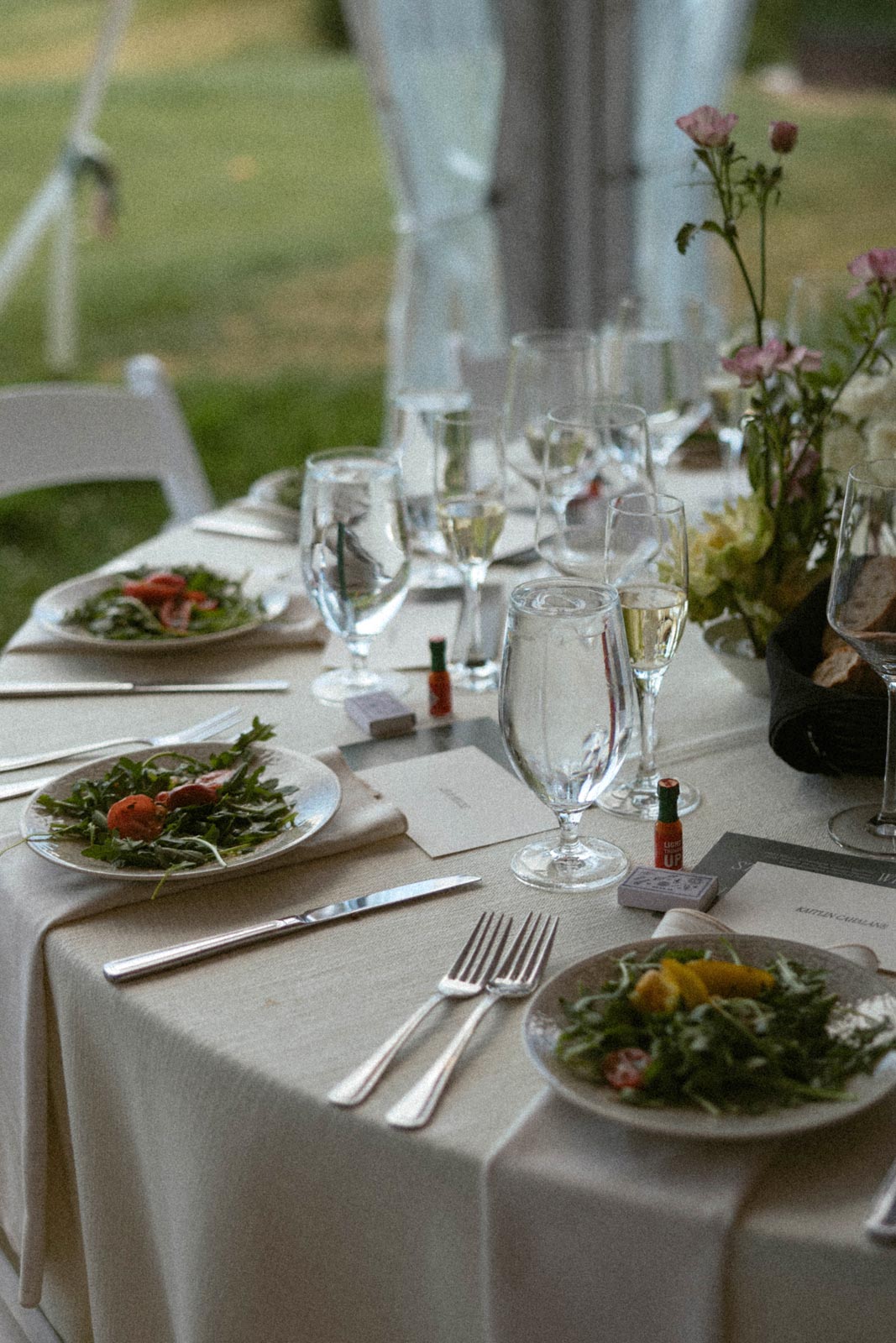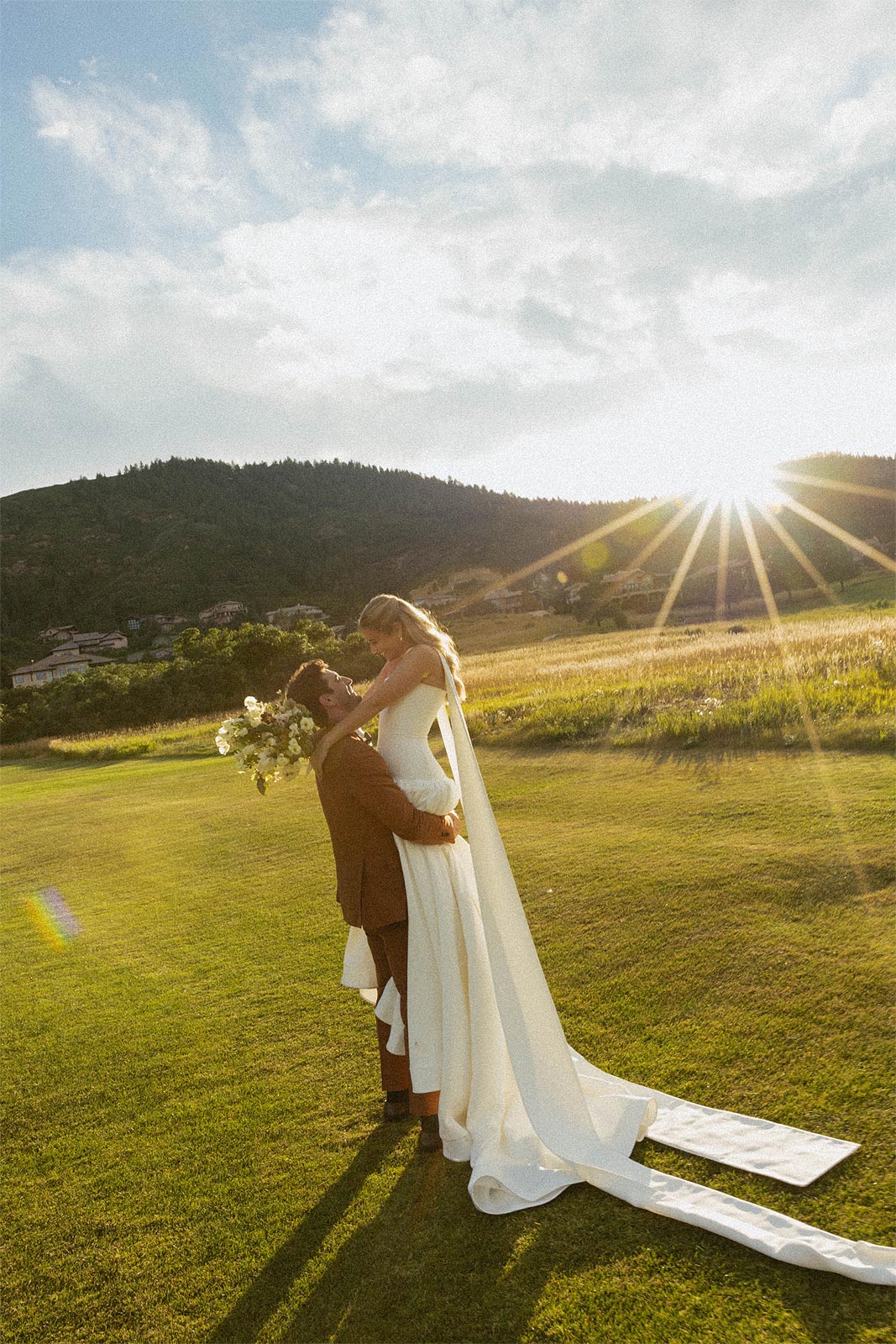 The hem is finished with wide horsehair for effortless movement, while the delicate neck veil adds a touch of drama and refinement. Chic, understated, and eternally elegant, Hannah’s dress is a statement of refined sophistication.
